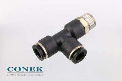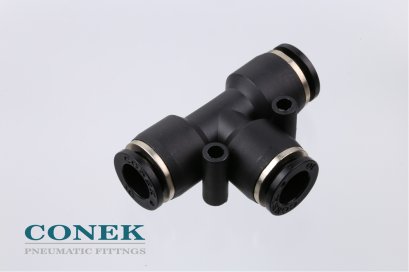 PE fitting ลม 3 ทาง ฟิตติ้งลมยี้ห้อ Conek สำหรับเสียบสายลมพียูหรือสายลมไนล่อน ผลิตจากพลาสติกคุณภาพสูง ใช้งานที่แรงดัน 0-8 Bar ทำงานที่อุณหภูมิ 0-60℃ มีให้เลือกใช้กับสายลมขนาด 4mm,6mm,8mm 10mm,12mm,16mm (ก่อนสั่งซื้อโปรดระบุขนาดสายลมและขนาดเกลียวทุกครั้ง)