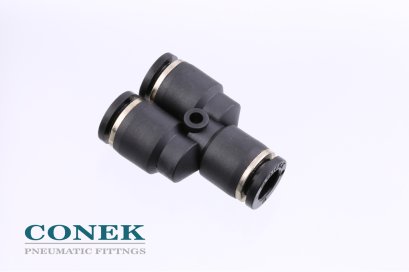 PW ข้อลดสามทาง วาย ฟิตติ้งลมยี้ห้อ Conek สำหรับเสียบสายลมพียูหรือสายลมไนล่อน ผลิตจากพลาสติกคุณภาพสูง ใช้งานที่แรงดัน 0-8 Bar ทำงานที่อุณหภูมิ 0-60℃ มีให้เลือกใช้กับสายลมขนาด 4mm,6mm,8mm 10mm,12mm,16mm (ก่อนสั่งซื้อโปรดระบุขนาดสายลมและขนาดเกลียวทุกครั้ง)