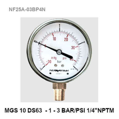 คอมปาวด์เกจย่านวัด -1-3Bar (-30-40 PSI) เกลียวทองเหลือง 1/4" NPT/BSP ตัวเรือนทำจากสแตนเลส สามารถเติมน้ำมันได้ Compound Gauge